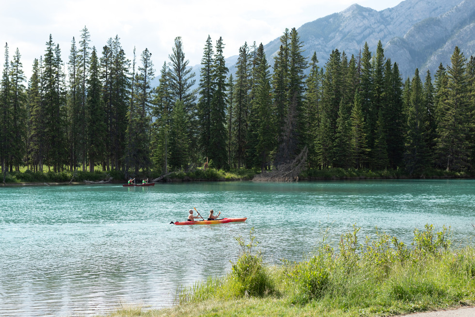We slept in that morning, ate some breakfast, and started our beautiful scenic drive north towards Jasper. This drive was just unreal. I spotted a bald eagle and some elk near the road, winding streams, fluffy clouds, mountains in the distance, and not many other drivers on the road. So peaceful! Also the perfect setting for listening to our audiobook, White Fang! On our drives if we weren't talking or planning our next adventure, we were listening to this book. (I am now obsessed with Jack London and finished Call of the Wild, too!)