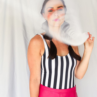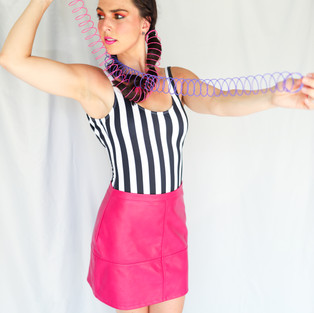 A few weeks later I asked my sweet friend Anna if she wanted to have a Slinky-themed photoshoot before our workout and chilling by the pool. She was IN and also had the best attitude! She came ready for some fierce makeup, and rocked the swimsuit/leather skirt combination perfectly!