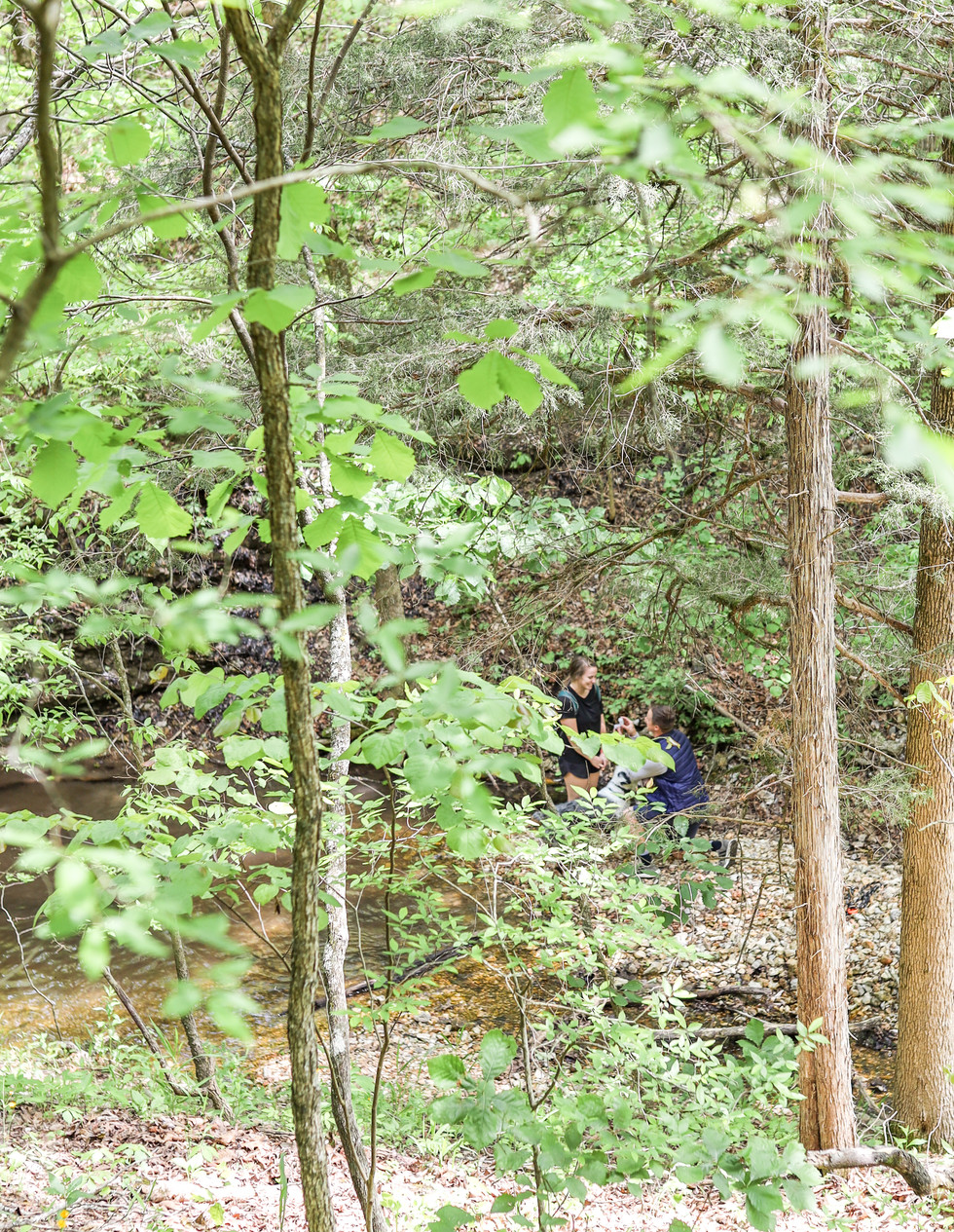 The trio approached, and Rhett knew to start talking loudly to give me a clue that they were arriving to the location since I was out of view of the trail. I peeked to see Rhett helping Chelle down the ridge and Oakley diving quickly into the pool of water. The two watched their pup splashing while Rhett got the ring box out and prepared to ask the most important question.